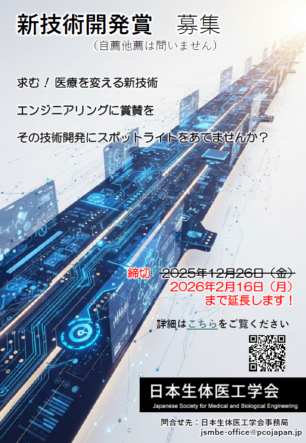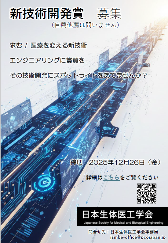- 2025年度日本生体医工学会 各賞候補推薦のお願い(pdf)